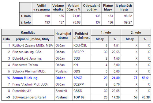 Výsledky druhého kola historicky první přímé volby prezidenta ČR. Celková volební účast ve Výškovicích byla 70,98%.rn