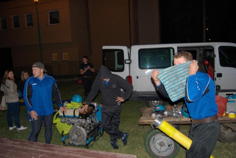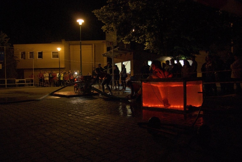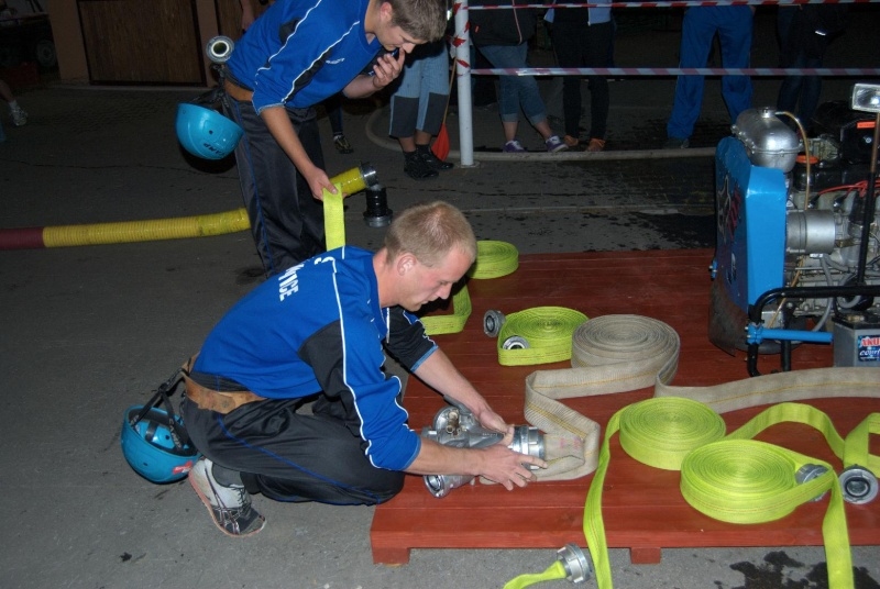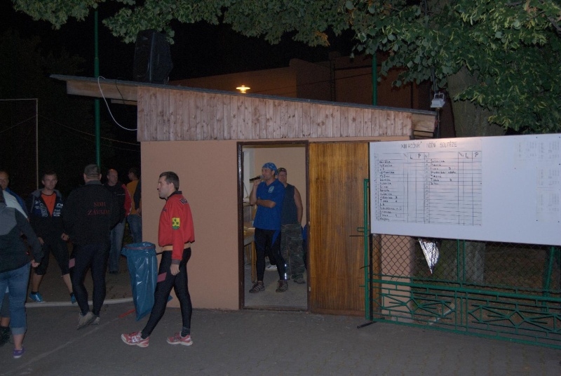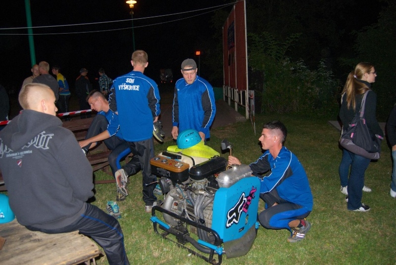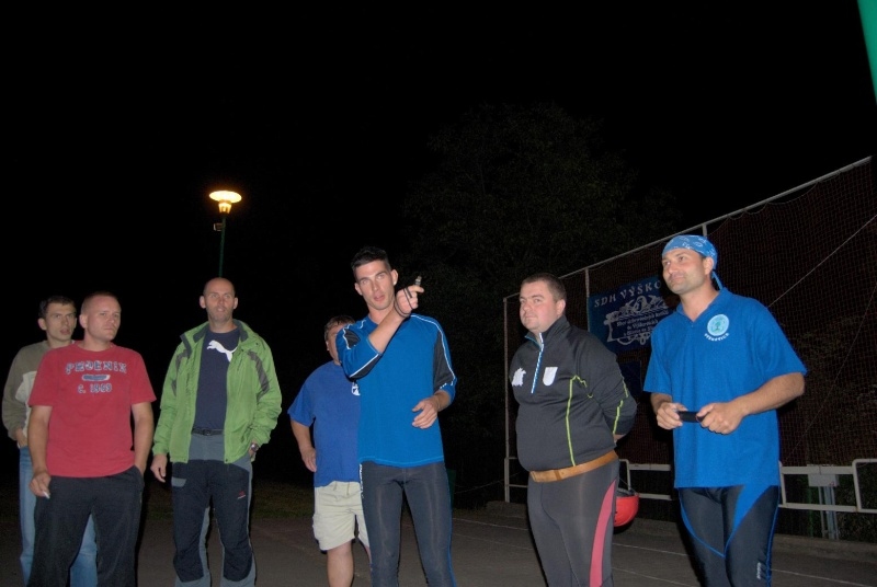 Zahájení soutěže proběhlo krátce po 21. hod. a jako první družstvo se na start postavili muži ze Závišic. Výborný čas 15.397s předznamenal, že v dnešním večeru se až tak nízké časy na časomíře zobrazovat nebudou. Jako druzí se na start postavili domácí Výškovice A, mj. obhájci prvního místa z minulého ročníku. Velká a hlasitá podpora nejen místních, ale také přespolních diváků, kteří se přisli v pátečním večeru podívat, pomohla Výškovicím "A" dokončit svůj pokus v čase 15.292s a těsným rozdílem odsunuli Závišice z prvního místa.