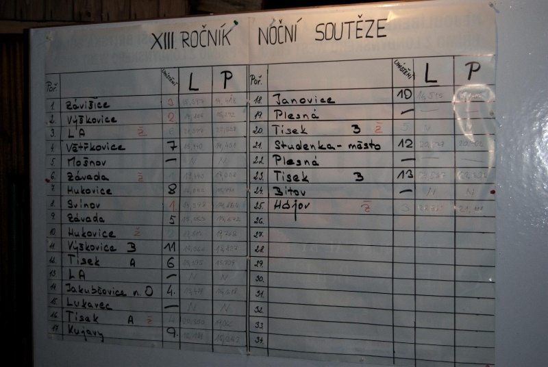 V letošním roce se bohužel noční start nevydařil sousednímu Tísku. Tradičně do Výškovic jezdí se svými čtyřmi týmy. Družstvo "A" žen "pouze" bramborová medaile, "B" neklasifikovány a muži 6. a 13. místo.