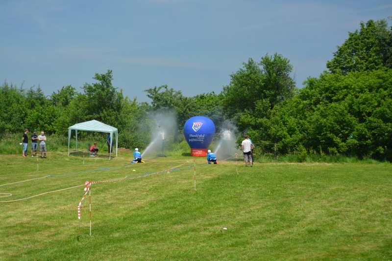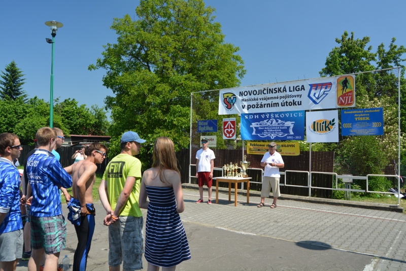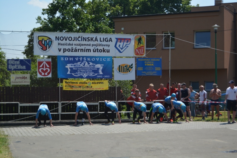 Pohárová soutěž byla zahájena krátce po 10. hodině týmem z Lukavce. Prostřik na levém terči (který mimochodem ve větrném dni připravil nejedno družstvo o solidní umístění) znamenal čas 19,437s a ztrátu nadějí na kvalitní umístění. Jako druhý tým v pořadí se postavili místní borci z Výškovic. Letošní sezóna jim prozatím nevychází dle jejich představ, a proto se chtěli "blýsknout" alespoň před domácím publikem. Skvělá souhra celého týmu a bezchybné sestřiky, to znamenalo výsledný čas 14,518s a nastavená laťka pro nadcházející týmy dostatečně "vysoko".