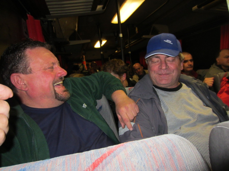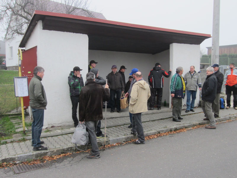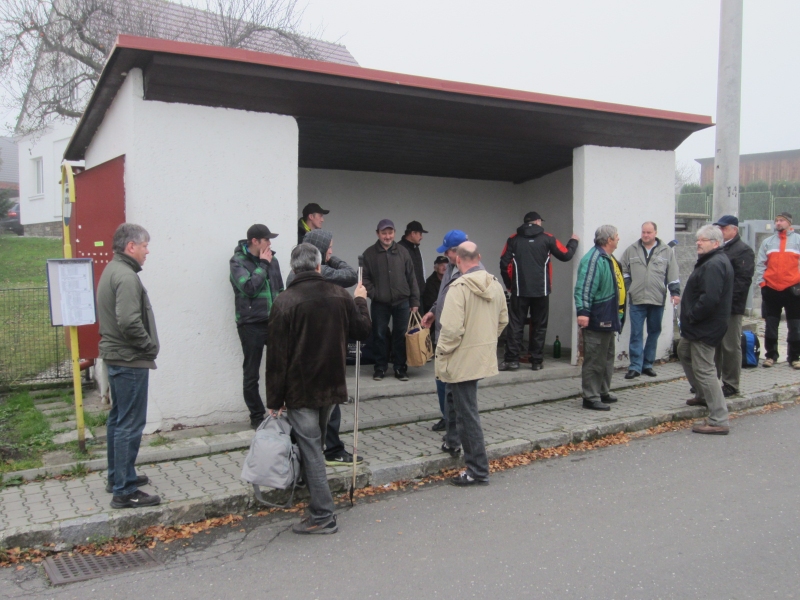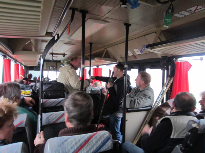 Po nástupu autobus pokračoval do Tísku, kde se řady rozšířily o další účastníky zájezdu a poté zamířil již na Zimní stadion ve Studénce. Po krátkém předání informací a provedení kontrolního součtu cestujících (pro nezbytnou kontrolu při odjezdu), kdy stav čítal 42 cestujících, již dav zamířil do útrob stadionu, posléze do šaten.