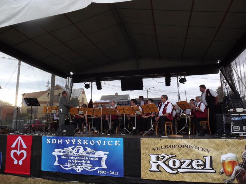 Poté již hřiště patřilo prvnímu účinkujícímu a to Dechové hudbě Slatina, která v letošním roce oslaví své 105. výročí založení. Poslechnout líbivé písně si přišli nejen občané Výškovic, ale velký zájem byl i občanů přespolních, kteří postupně zaplňovali poslední venkovní místa - přece jenom počasí zcela přálo k této odpolední relaxaci. Hosty nesužovalo ani ostré slunce tak ani déšť.