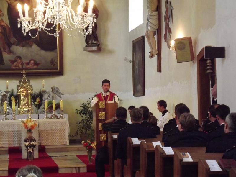 V pátek 24. srpna kolem 13. hodiny přijeli zástupci obce Boxdorf z Německa (družba s hasiči z Boxdorfu trvá od roku 1973), aby se přidali k oslavám založení. Samotné oslavy byly zahájeny Svatou Mší ve Slatině, na kterou občany Výškovic a pozvané hosty odvezl přistavený autobus. Mši vedl farář a člen SDH Výškovice Mgr. P. Rak, ThLic. Mši se účastnili členové z Výškovic, hosté z Boxdorfu a hasiči okolních sborů: Těškovic, Tísku, Bílovce a Lubojat.