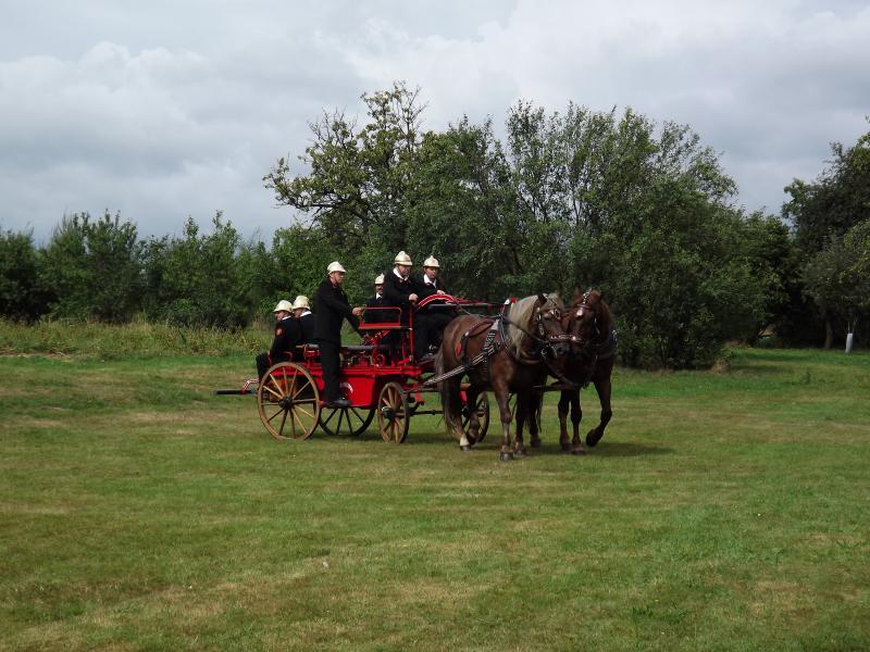 Pořadatelé si připravili pro hosty bohatý doprovodný program. Jako první se představili hasiči ze Skřípova se svou historickou koňskou stříkačkou a dokonce předvedli tuto stříkačku z roku 1907 v akci.