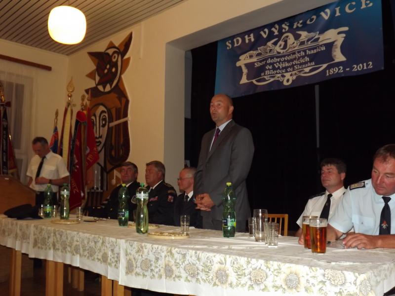 Po zdokumentování členské základny se všichni přesunuli do místního kulturního domu, kde se přidali k čestným hostům a všichni byli v očekávání zahájení slavnostní výroční schůze. Krátce po 19. hod. schůzi zahájila hymna České republiky. Následovalo shrnutí historie sboru od svého založení až po dnešní dny starostou Břetislavem Němcem. Po svém projevu všichni zúčastněni zhlédli připravenou video projekci, kde pomocí dostupných fotografických materiálu, komentovanými pasážemi a titulkovými komentáři vytvořili členové sboru Vladimír Říman a Michal Richter výlet do minulosti jak sboru SDH Výškovice, tak i samotné obce Výškovice.